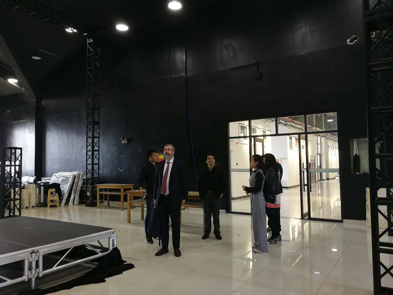 会后,Mauro先生一行在黄新平、石颖、任波等人的陪同下,实地参观了美术系、舞蹈系、艺术培训部。